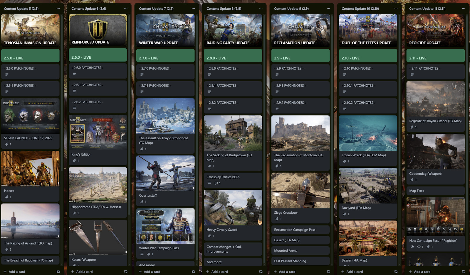 We’ve chronicled all of our post-launch support at chivalry2.com/roadmap and feel that, after over three years of support, we have more than accomplished our goal by significantly increasing the game’s content, features, and quality beyond the initial target.